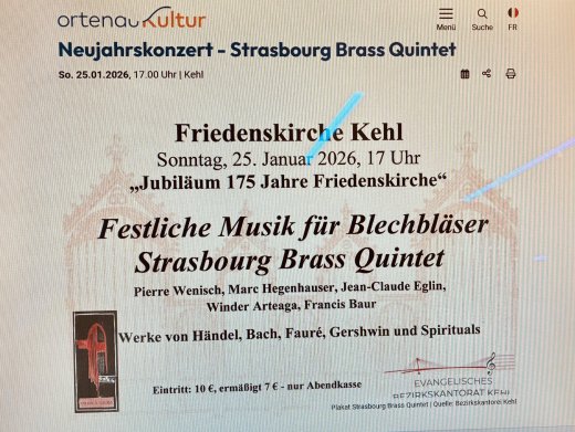 CONCERT LE DIMANCHE 25 JANVIER 2026 17H00 FRIEDENSKIRCHE KEHL